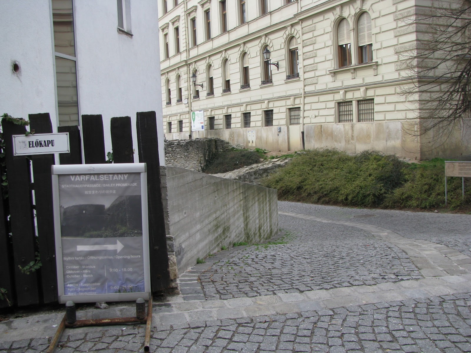 Itt kezdődött a Várfalsétány. Bár valami kerítés félével volt elkertelve, de ingyen be tudtunk menni, hogy mi is végigmehessünk ezen az érdekes városi látnivalón.